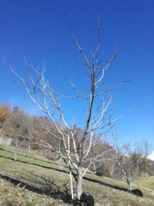 Negli anni la produzione nocicola presso la parcella sperimentale è risultata mediamente abbondante e, tra le diverse varietà in prova, la Lara è risultata la più produttiva. La Chandler invece, unica varietà californiana in studio, per la maggiore sensibilità nei confronti del freddo invernale, delle brinate primaverili (confermata in occasione dell’evento gelivo nella primavera 2017) e della batteriosi, nonché per le maggiori esigenze dal punto di vista della fertilità del terreno, è stata estirpata. La porzione di parcella oggetto di estirpo è stata destinata all’impianto di Lara, allevata a piramide (e non a vaso libero) e con un sesto d’impianto più intensivo (4,5 m tra una pianta e l’altra sulla fila, rispetto ai 6 m della parcella preesistente), al fine di sfruttare maggiormente la superficie a disposizione e, di conseguenza, aumentare la produttività.